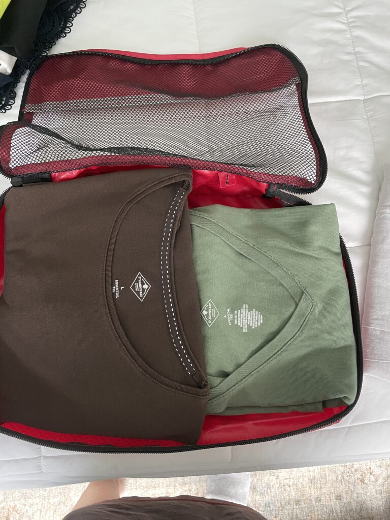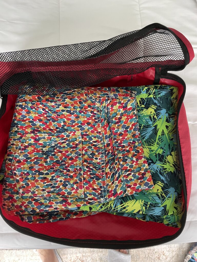 Packing cubes separate your luggage into neat compartments by sorting clothes and accessories into types and/or outfit. The cubes come in a variety of sizes, styles, and materials, so you can choose the ones you like best. I pack my jeans, skirts, and/or shorts in the largest cubes and shirts and tees in the medium size. The smaller cubes are good for socks and underwear.