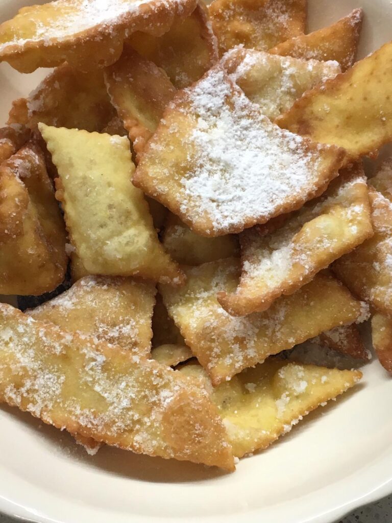 In Piemonte, they are known as bugie—which literally means “lies.” Perhaps chatting too much leads to telling a few bugie. In Vercelli, they are also called gale.