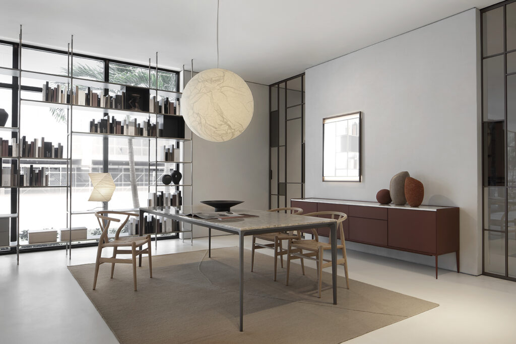 Rimadesio’s approach has always blended craft and engineering. Many of its signature systems—Modulor, Cover, Rialto, and Alambra—anchor the Miami space and form a continuous architectural rhythm. As Romano notes, the company elevates what might appear to be simple elements.